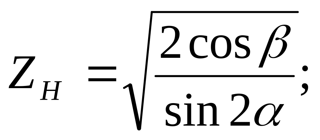 Осы айтылған жағдайларға байланысты қисық тісті берілістердің жанасу беріктігі жоғары келеді және есептеуді жеңілдету үшін көрсетілген ерекшеліктерді бір-ақ коэффициент ZK есепке алынады. сонда ZK коэффициенті қиғаш тісті берілістердің ZHZε көбейтіндісінің түзу тісті берілістің ZH коэффициснтіне қатынасы алынған.