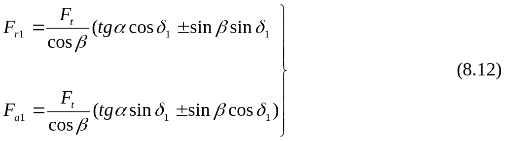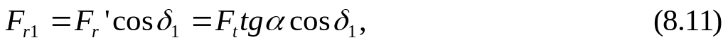 Қиғаш және дөңгелек тісті конустық берілістерге әсер ететін күш шамасын төменгі формулалармен анықтауға болады: