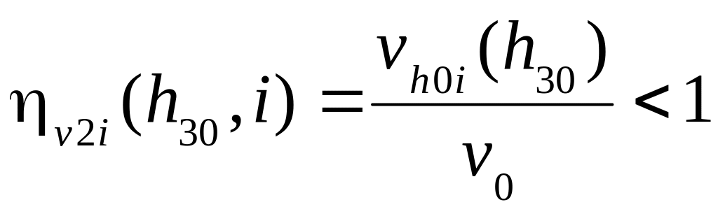 Предположим, что зависимость i =i (v1, h3) монотонно возрастает по обоим аргументам. Тогда, если i[i], то ηv2=1 и вынужденного снижения скорости нет. Если же i>[i], , то такая ситуация недопустима, для её преодоления скорость вынужденно снижается, и ηv2<1.