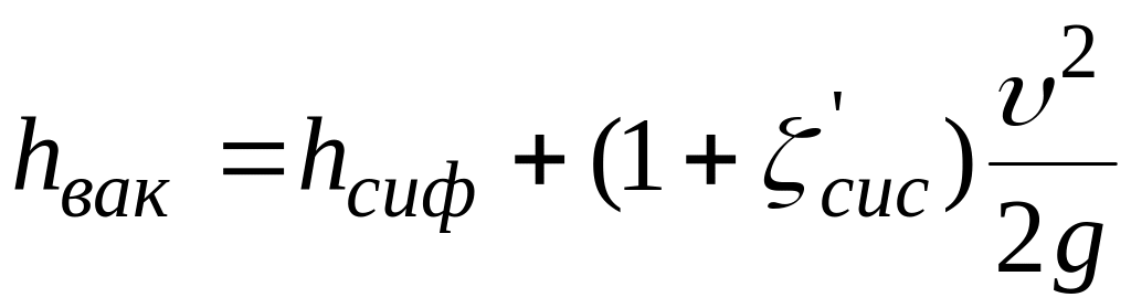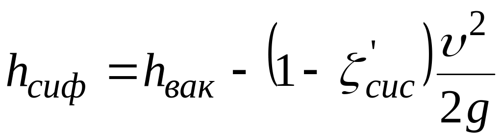 При заданій висоті всмоктування сифона hсиф вакуумметричну висоту визначають за формулою: