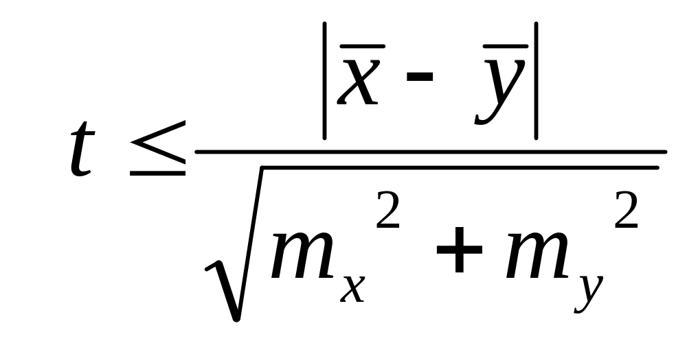 7.11. Оцінку достовірності різниці генеральних середніх проводять за формулою: |