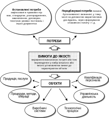Рис. 4.2. Взаємозв'язок вимог до якості, потреб і об'єктів, на які поширюються вимоги