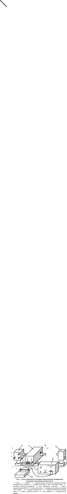 Монохроматор 7 установлен на рельс 1. Со стороны входной щели 10 на рельс установлен источник излучения 12 на рейтере. Необходимое расстояние от источника света до входной щели можно получить, передвигая рейтер вдоль рельса.