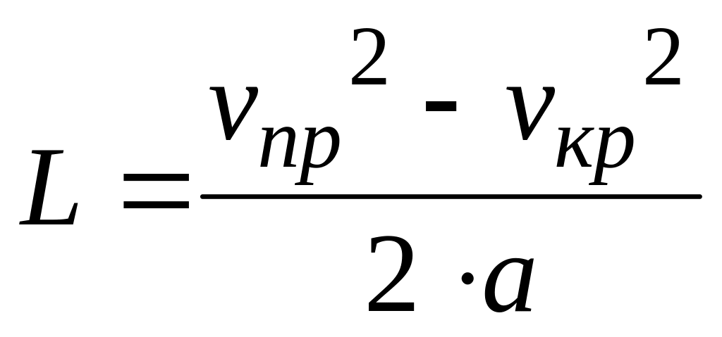 За умов нерівномірного руху на кривій (рух з гальмуванням) мінімальну довжину перехідної кривої можна визначити за формулою: