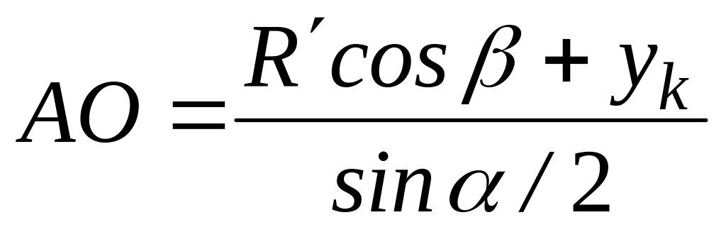 ОЕ дорівнює зменшеному радіусу R/ (див. формулу 17), β –кут повороту клотоїди (формула10).