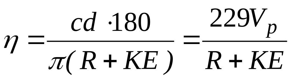 Відстань dn=(R+КЕ)tgθ, де КЕ – відстань між віссю кола в середині сектору К і віссю з’їзду Е, що прилягає до нього.