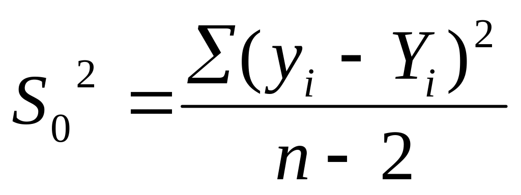 4. Знаходять дисперсію оцінки, яка характеризує міру розсіювання експериментальних даних відносно прямої, за формулою