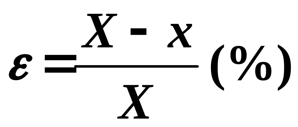 Здесь X – истинное значение измеряемой величины (неизвестная величина), x – результат одного из измерений, x – абсолютная ошибка измерения.