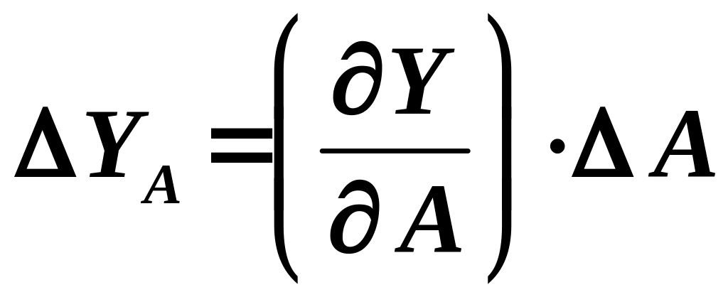 С математической точки зрения величина Y = f (А, В, С,...) является функцией нескольких переменных, а величины YA, YB, YC, … представляют собой частные дифференциалы, которые могут быть вычислены по формулам