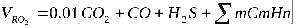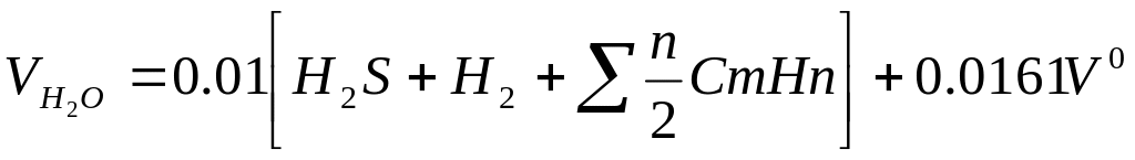 Для газоподібного палива теоретичні об'єми продуктів згорання (м3 /м3 ) при αт=1 визначаються по формулах: