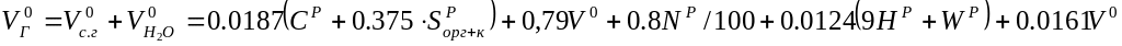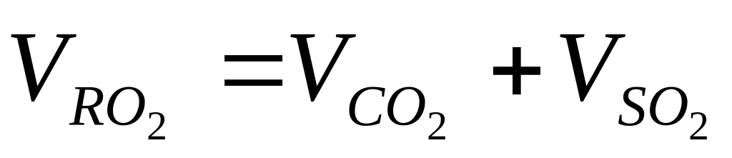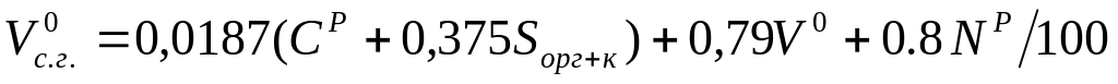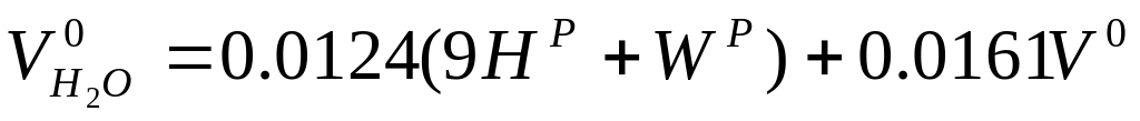 Для твердих і рідких палив теоретичні об'єми продуктів повного згорання (м3/кг) при αт = 1, визначаються по формулах: