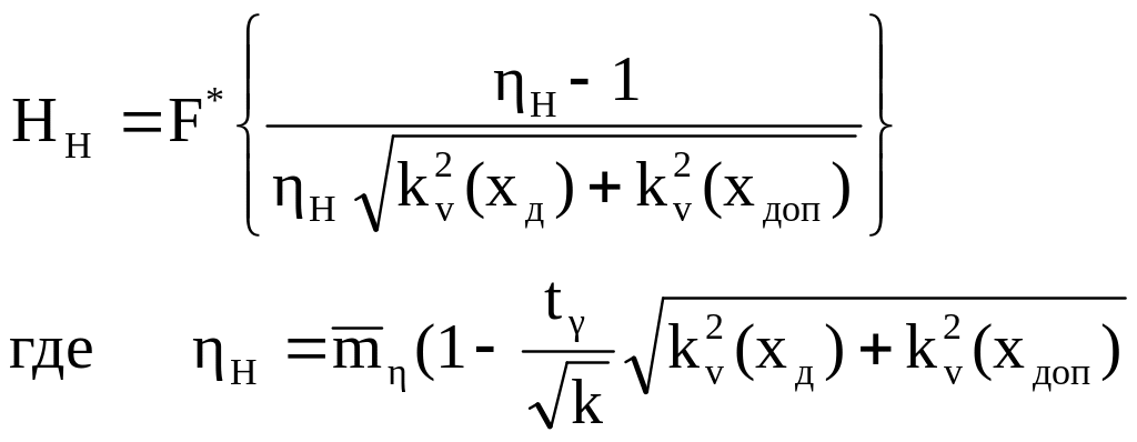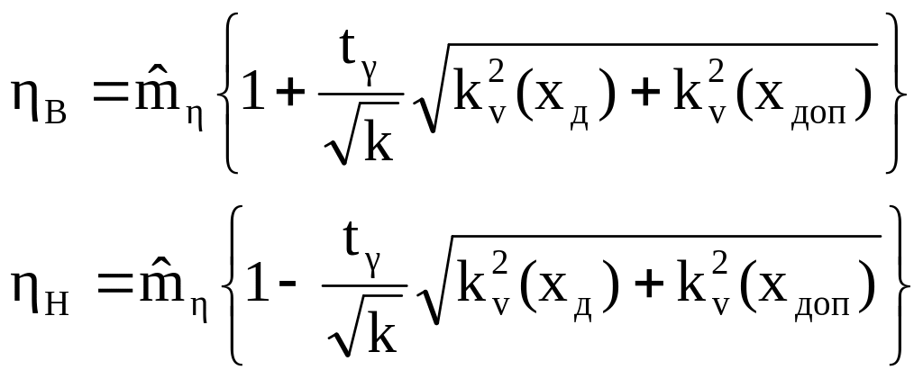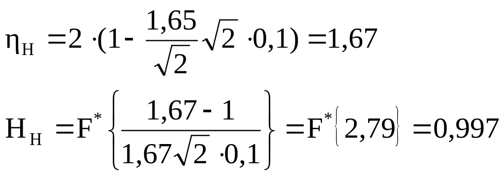 где ηН, ηВ - соответственно односторонняя нижняя и верхняя границы доверительного интервала для коэффициента запаса.