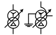 Приборы измерительные показывающие. Общее обозначение Примечание. Внутри общего обозначения могут быть вписаны поясняющие буквы: – амперметр A – вольтметр V – ваттметр W – варметр var – частотомер Hz – синхроноскоп T |