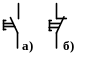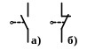 Контакты коммутационных устройств: – замыкающие (а); – размыкающие (б) |