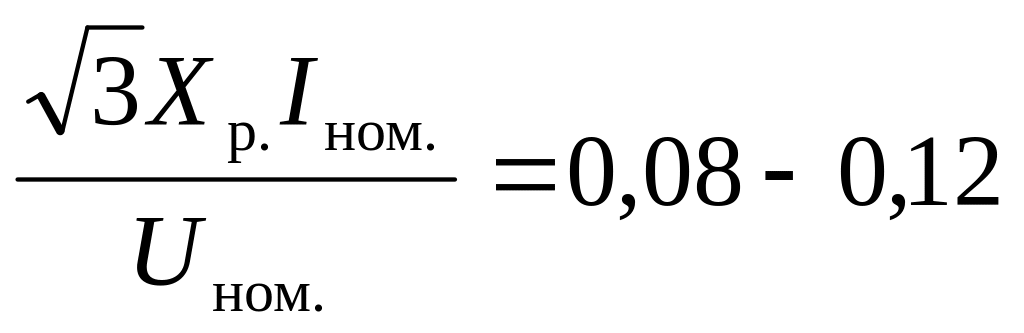 Сопротивление секционного реактора выбирается из условий наиболее эффективного ограничения токов КЗ при замыкании на одной секции. Обычно оно принимается таким, что падение напряжения на реакторе при протекании по нему номинального тока достигает 0,080,12 номинального напряжения, т. е.