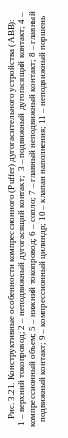 В нормальном положении контакты выключателя замкнуты и ток проходит от верхнего токопровода к нижнему через главные контакты и компрессионный цилиндр (рис. 3.21).