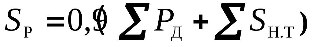 где ∑Рд − сумма расчетных мощностей на валу электродвигателей напряжением 6 кВ, в МВт; ∑Sн.т − сумма номинальных мощностей трансформаторов 6/0,4 кВ, МВА.