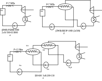 В зависимости от вида и агрегатного состояния теплоносителя создается тот или иной термодинамический цикл АЭС.