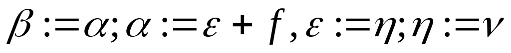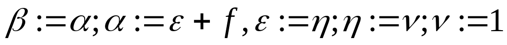 (1) пунктіні формула орнына бір ғана жалғыз нәтиже алғанша қайталаймыз. Құрылған постфикстік формула есептеуін келесі түрде көрсетуге болады: