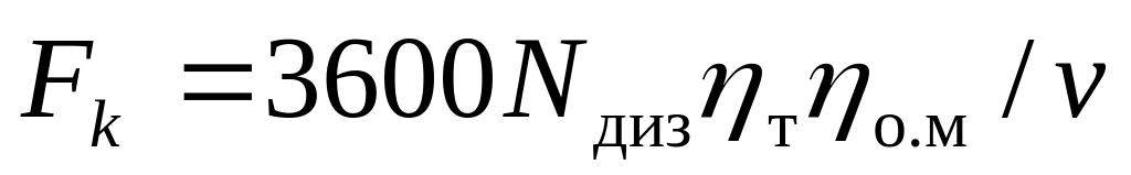 Сила тяги автосамоскида має також обмеження по потужності двигуна при заданій швидкості руху v (км/ч) і визначається