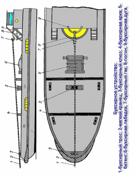 Наряду с перевозкой грузов на самоходных судах большое место в работе флота занимают буксирные перевозки, которые во многих случаях являются более рентабельными. С буксирными операциями также часто связаны работы по перестановке и швартовке самоходных судов, по вводу их в порт и выводу из него, перемещению несамоходных плавучих сооружений. Эти работы выполняют специальные суда — буксиры, которые, помимо других устройств, должны иметь устройство, обеспечивающее надежную и удобную буксировку.