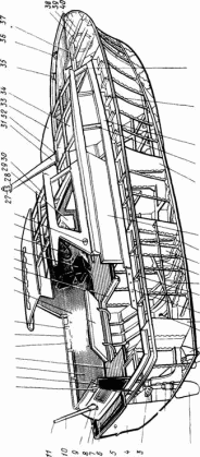 На рис. 8 показан разрез катера для пояснения основных наименований его корпуса и надстроек.