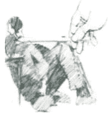Правильное использование выравнивания по линии помогает "схватить" характер действия фигуры. Линия отвеса – это вертикаль, линия уровня – горизонталь. Каждый из нас при помощи представления о балансе может верно судить о том, что такое вертикальные и горизонтальные линии. Снова, пользуясь карандашом в качестве измерителя, расположите его прямо перед собой и напротив объекта и, меняя его положение по отношению к частям натуры, попытайтесь определить, какие из них совпадают по вертикали, а какие - по горизонтали. Положению, в котором находится изображенная ниже фигура, свойственен специфический характер действия. Мы можем судить об этом, сделав набросок простейшей формы и применив стратегию выравнивания по "уровню и отвесу". Любой выступ – колено, плечо, бедро, локоть, носок или подбородок – потенциально подходят для проведения измерений. На следующей странице показано, как применялся этот метод в рисунке. После выполнения предварительного наброска, компоновки фигуры на листе, с помощью "уровня" было определено, что колено и нос модели находятся на одной линии. Это стало важным звеном проведения измерений, поскольку художник, помимо частностей, мог теперь расположить и изображение головы в целом. В результате только этого приема художник смог точно расположить изображение головы, правого плеча и стула. Затем и стул дал достаточно информации – если внимательно оценить расположение его спинки и ножек, можно выявить множество точек, где эти элементы пересекают фигуру.