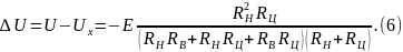 Объект измерения - электрическая цепь. Измерению подлежит параметр этой цепи, а именно, постоянное напряжение на ее участке, сопротивление которого равно RН (см. рис. ). Эквивалентное сопротивление остальной части цепи равно RЦ. Истинное значение измеряемого напряжения, которое было на сопротивлении RН до подключения вольтметра, равно Ux. Средство измерений - стрелочный вольтметр, собственное сопротивление которого RВ = 400кОм.