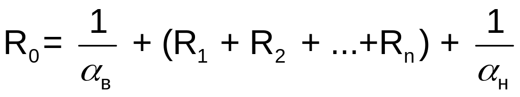 Сопротивление теплопередаче (R0,м2 · °С/Вт) проектируемой ограждающей конструкции с последовательно расположенными слоями следует определять по формуле