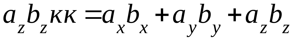 Отже , скалярний добуток двох векторів , заданих координатами в ПДСК ,дорівнює сумі