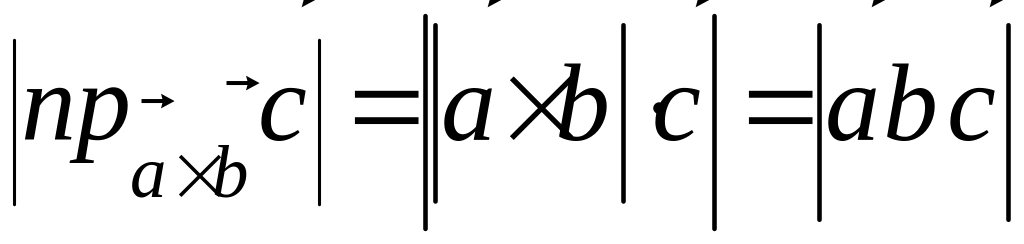 Модуль мішаного добутку трьох векторів дорівнює обєму паралелепіпеда, побудованого на цих векторах віднесених до спільного початку.