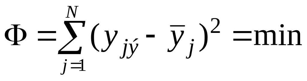 Если в выражении (3.10) функция Ф есть дифференцируемая функция по всем своим параметрам bi и требуется так подобрать данные параметры, чтобы выполнялось условие минимума, то необходимым условием этого будет являться равенство нулю ее частных производных по всем параметрам bi: