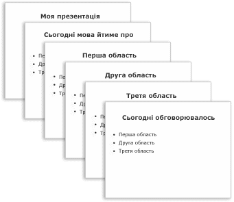 Порада Візьміть до уваги час, протягом якого кожний слайд має відображатися для аудиторії. Зазвичай стандартом вважається тривалість показу кожного слайда дві–п'ять хвилин.