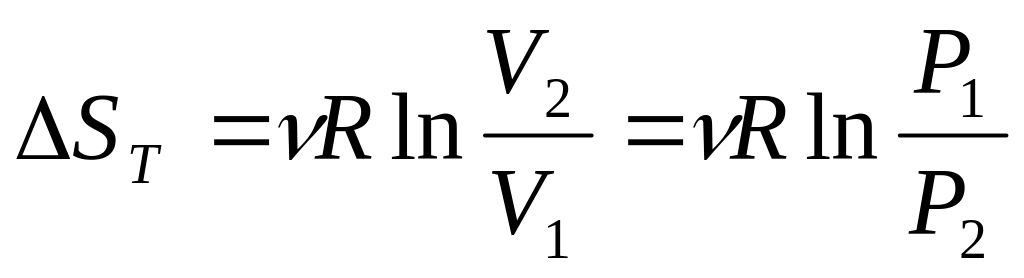 Если 1 молей одного газа, занимающего объем V1, смешиваются с 2 молями другого газа, занимающего объем V2, то общий объем газовой смеси будет равен (V1 + V2 ). Изменение энтропии в рассматриваемом процессе равно сумме изменений энтропии каждого газа при изменении его объема от первоначального значения до(V1 + V2 ) :
