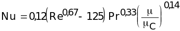 Для розрахунку середньої тепловіддачі в умовах перехідного режиму течії рідини застосовується узагальнене рівняння: