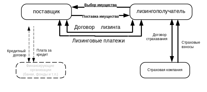 Рисунок 4 - Общая схема лизинговой сделки и финансовых потоков
