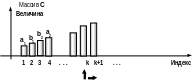 Алгоритм представлен процедурой Merge. Ее параметры – размеры массивов и собственно массивы. Перед слиянием «просматривающие индексы» i, j, k устанавливаются на 1. Шаг алгоритма заключается в сравнении рассматриваемых элементов сливаемых массивов А и В. В результирующий массив С копируется меньший из сравниваемых элементов, и соответствующие индексы инкрементируются. На рисунке показаны результаты первых 4-х шагов работы алгоритма, а также k-тый шаг. Асинхронный просмотр осуществляется, пока один из массивов не окажется просмотренным полностью. После этого в массив С переписывается «хвост» второго массива.
