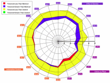 Лепестковая диаграмма (radar chart). Сравнивает величины нескольких значений, каждая из которых соответствует точке на оси. Количество осей соответствует количеству значений, а точки объединены линями.