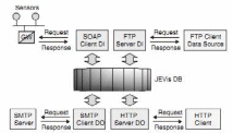 Простой протокол доступа к объектам (SOAP) с входными компонентами данных изображен на рисунке 103. Он запрашивает шлюзы JEVis для измерения данных и другой информации от заказчика через простой протокол доступа к объектам. Этот клиент входных компонентов данных использует база данных и инкапсулирует соответствующие шлюзу технологии, такие как специальные протоколы, механизмы аутентификации, типы данных, и так далее. HTTP-сервер выходных компонентов данных, как уже говорилось, - это интерактивный вид выходных компонентов данных. Удобство, время отклика, пользовательский интерфейс (как правило, графический пользовательский интерфейс, GUI), и другие аспекты являются основными при разработке этих компонентов, так как они являются «лицом» системы, которым клиент должен быть удовлетворен. Интерактивные входные и выходные компоненты данных обычно оснащены веб-поддержкой и графическим интерфейсом, основанным на Java-технологии.