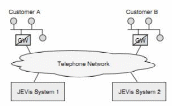 Разберем в качестве примера входящие соединения модема. Подключение компонента базы данных JEVis вызывает соединение через модемы и передачу данных через установленное двухточечное IP соединение. На рисунке 102 изображена сеть JEVis с 2 одинаковыми компонентами. (Система JEVis 1 и Система JEVis 2).