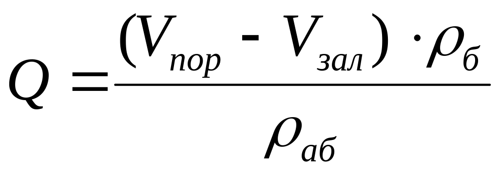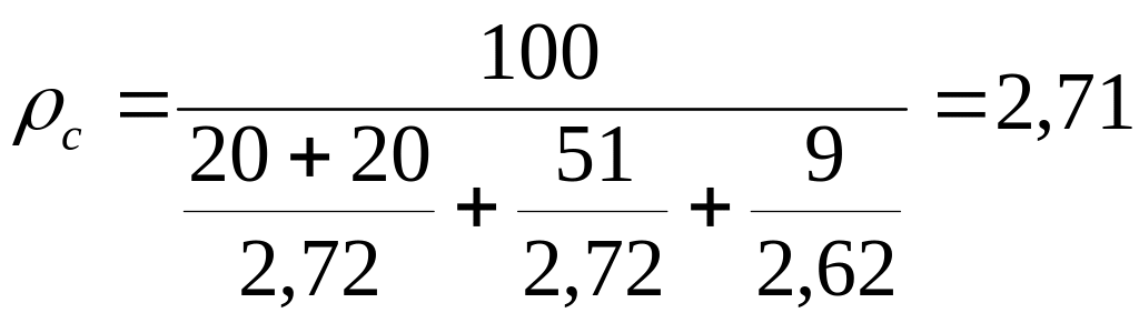 де ц, в, п, щ – вміст цементу, води, піску і щебеню (гравію), кг в 1 м3 бетонної суміші; ρц, ρв, ρп, ρщ – дійсна щільність цих матеріалів, кг/м3.