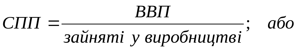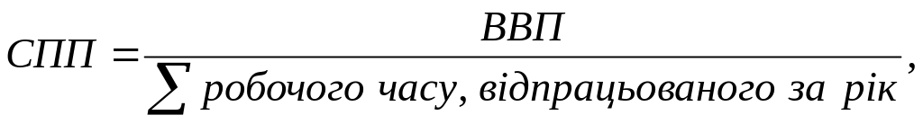 Часто у макроекономічному аналізі для порівняння країн застосовують показник суспільної продуктивності праці (СПП) який обчислюється: