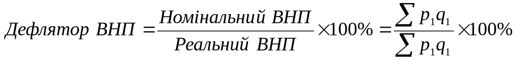 Дефлятор ВНП (індекс цін) враховує динаміку цін та зміни в структурі виробництва.