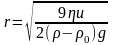 Радіус частинок r, що осідають у гравітаційному полі можна розрахувати за швидкістю осідання u, та відомими значеннями в’язкості η і густини середовища 0 та дисперсної фази