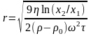 Радіус r сферичної частинки, що спостерігається в ультрамікроскопі можна визначити за формулою: