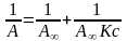 В координатах 1/А=f(1/с) це - рівняння прямої лінії, яка відтинає на осі ординат відрізок рівний 1/А∞ з тангенсом кута нахилу