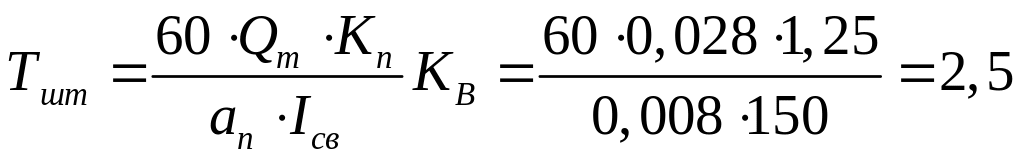 Формули для розрахунку поопераційного штучного часу наведені в додатку В