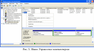 Інші операції з диском можна виконати у вікні Управление компьютером, яке викликається за допомогою контекстного меню ярлика Мой компьютер/Управление.
