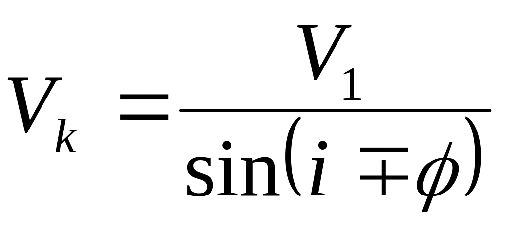 За величинами V1 та Vk визначаються синуси суми та різниці кутів і та і, як наслідок, значення цих кутів у градусах. Тим самим визначається кут падіння границі розділу і швидкості V2 у середовищі, що заломлює за формулою:
