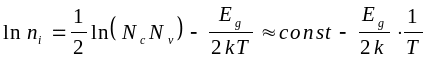 где Nc и Nv - эффективная плотность состояний в зоне проводимости и в валентной зоне соответственно. Следовательно, для собственного полупроводника энергия активации проводимости Ea = Eg / 2 .
